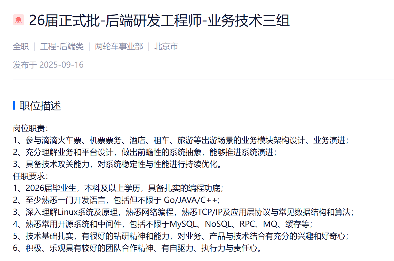 To be or not to be … That is a question 后端开发/研发方向 滴滴公司 携程 阿里云 大模型-AI 京东 先深入理解机器学习算法的理论基础,然后学习使用一个或多个主流的机器学习框架来动手实践,将理论应用于解决实际问题。 阿里云