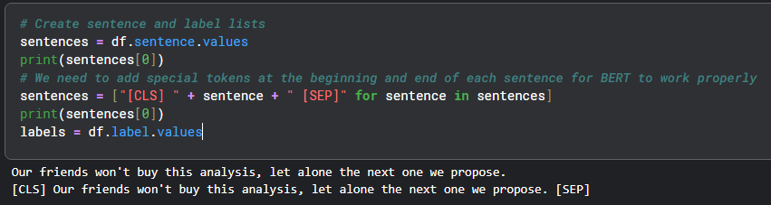 - Token embeddings: A token is added to the input word tokens at the beginning of the first sentence and a token is inserted at the end of each sentence.