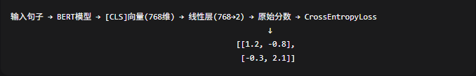 输入:一个分类标签[CLS]作为第一输入,随后跟上其他的word序列, 不断向上传,每一层都有注意力,通过前向传播,传给下一个编码器,从最后输出的CLS token.对应的值中可以获得分类信息