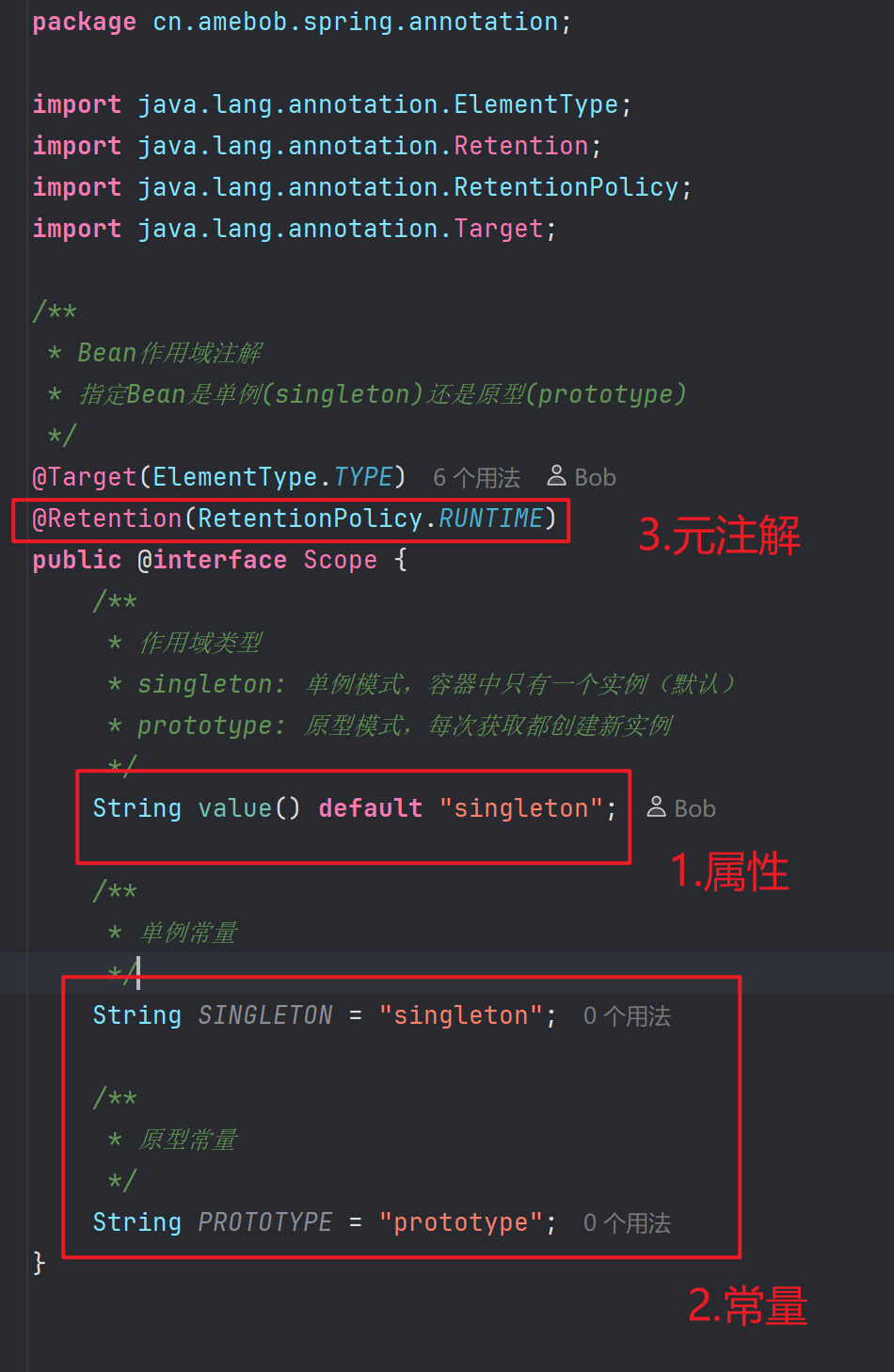 //获取注解,无注解返回null,有注解,获取注解上的信息(bean名称,scope ..),
