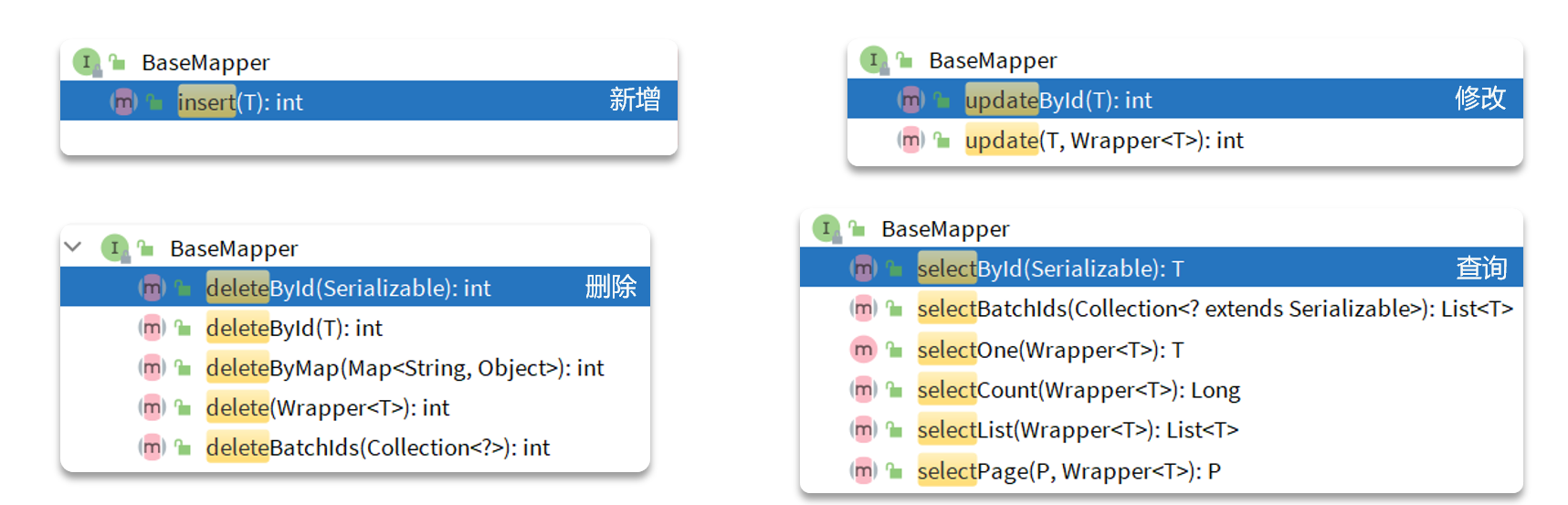 我们可以看到(下图)baseMapper有着一系列的基础数据库操作